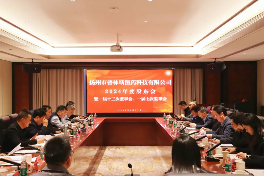 3月17日下午,扬州市普林斯医药科技有限公司组织召开2024年年度股东会暨一届十三次董事会、一届七次监事会。联环集团党委书记、董事长、总经理夏春来出席会议,股东代表及董事会、监事会全体成员参加会议。
